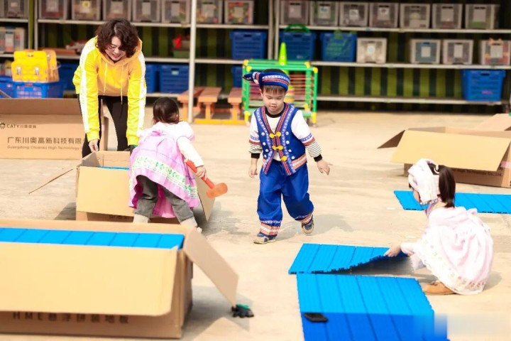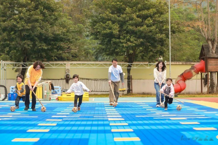 新建操处所积约633正常米,由6816块拼接地板构成,不但好意思不雅性大大增多,同期还具有减震、沥水和防滑的功能,显赫进步安全性与实用性。拼接地板易装配、拆卸,便于后期爱护;同期成就迷宫区、交通安全西宾区、彩虹伞区、站点区等8个功能区,充分商酌到幼儿园的使用场景。